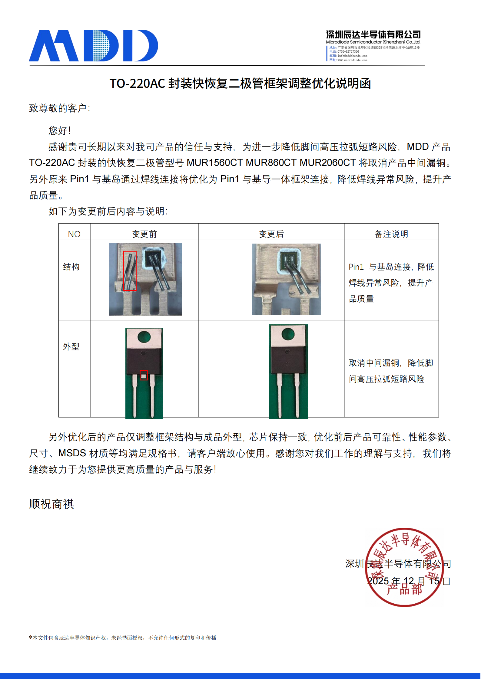 TO-220AC 封裝快恢復二極管框架調整優(yōu)化說明函