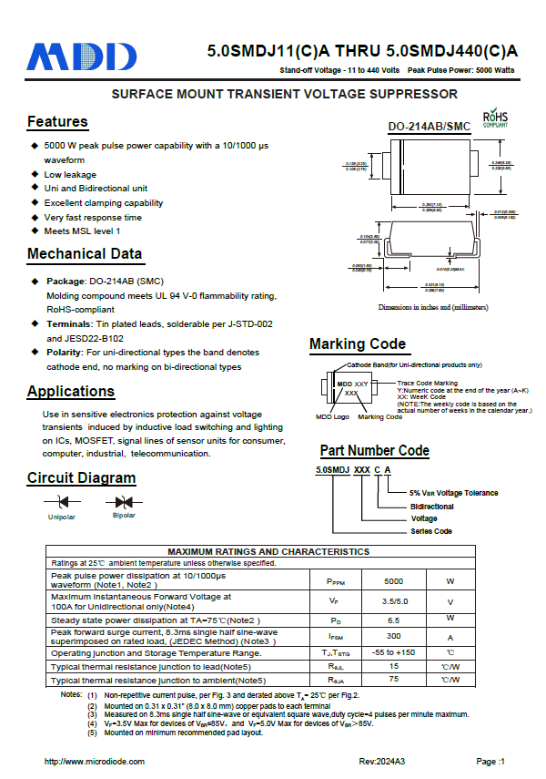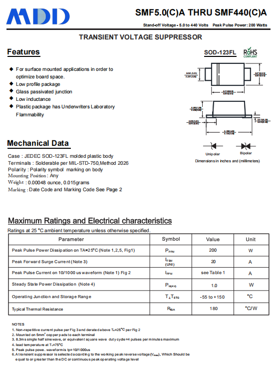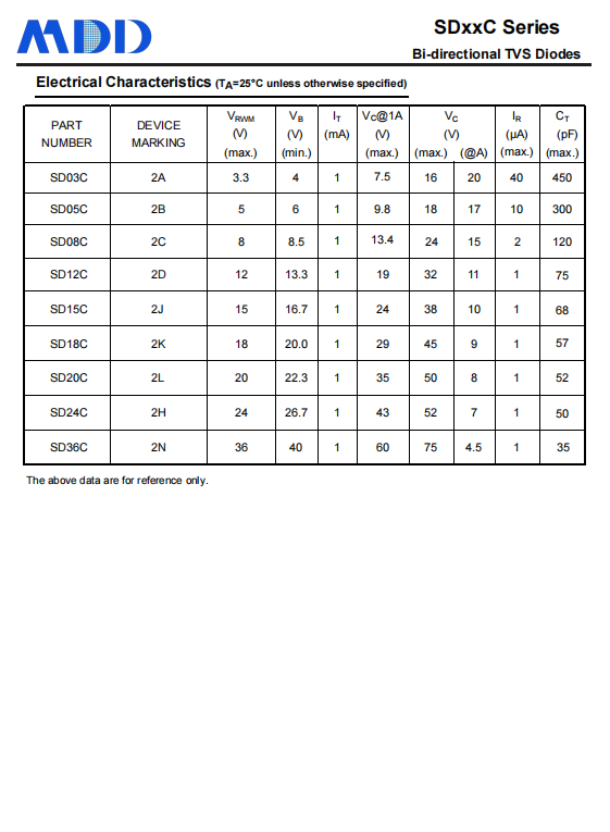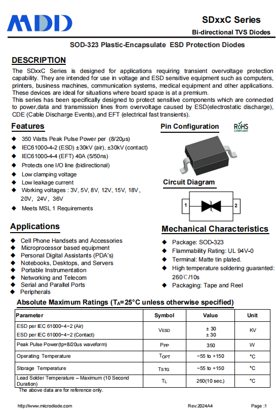 MDD的SDXXC系列雙向TVS二極管專為ESD防護(hù)設(shè)計(jì),具有以下特性: